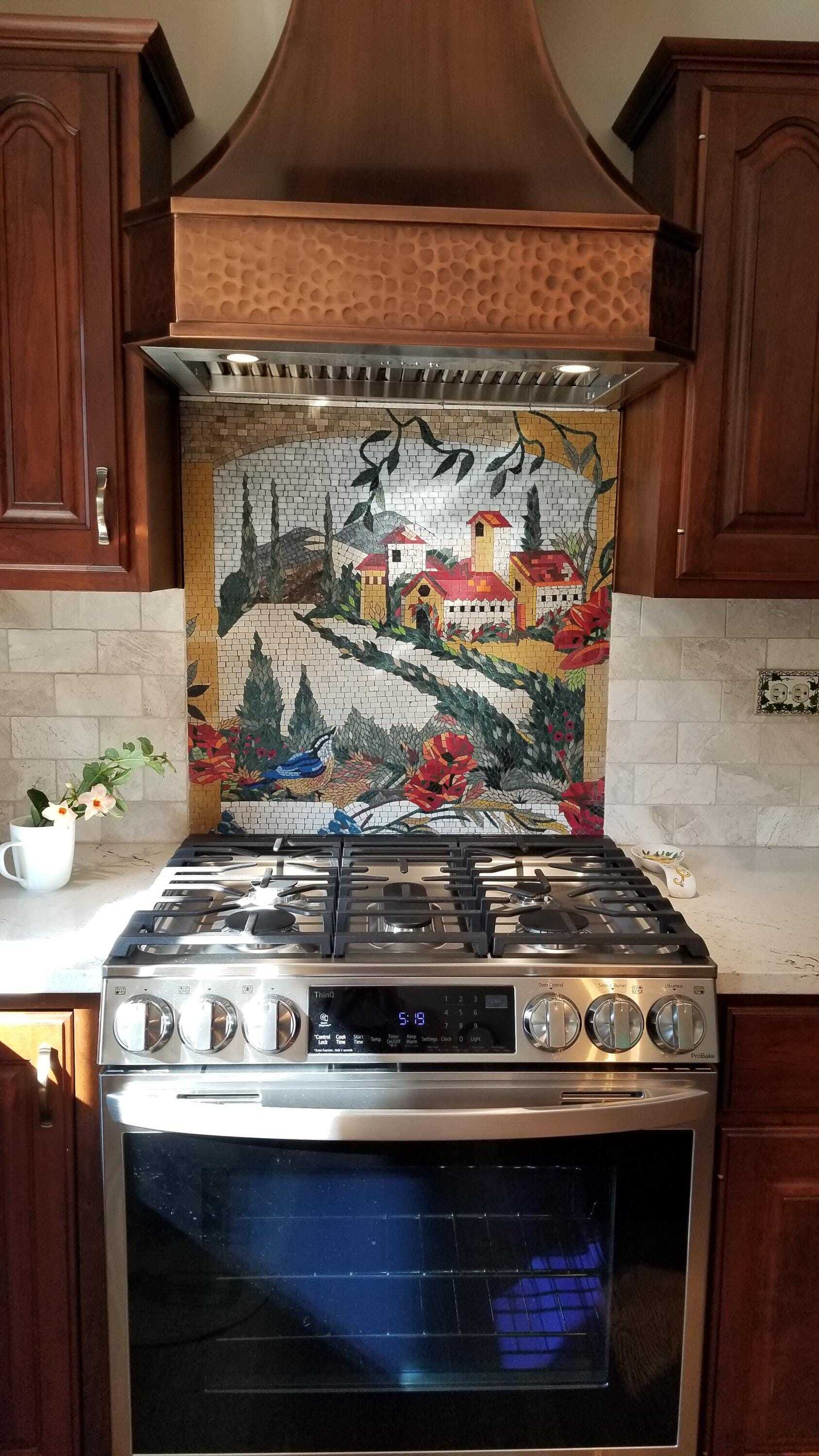 Crafted by skilled artisans, the Lively Toscana Village is handmade using natural marble mosaic stones, ensuring that each piece is not only unique but also highly durable. This attention to detail means that you can enjoy this stunning artwork for years to come, whether as a statement piece in your living space or as a captivating backsplash in your kitchen.
