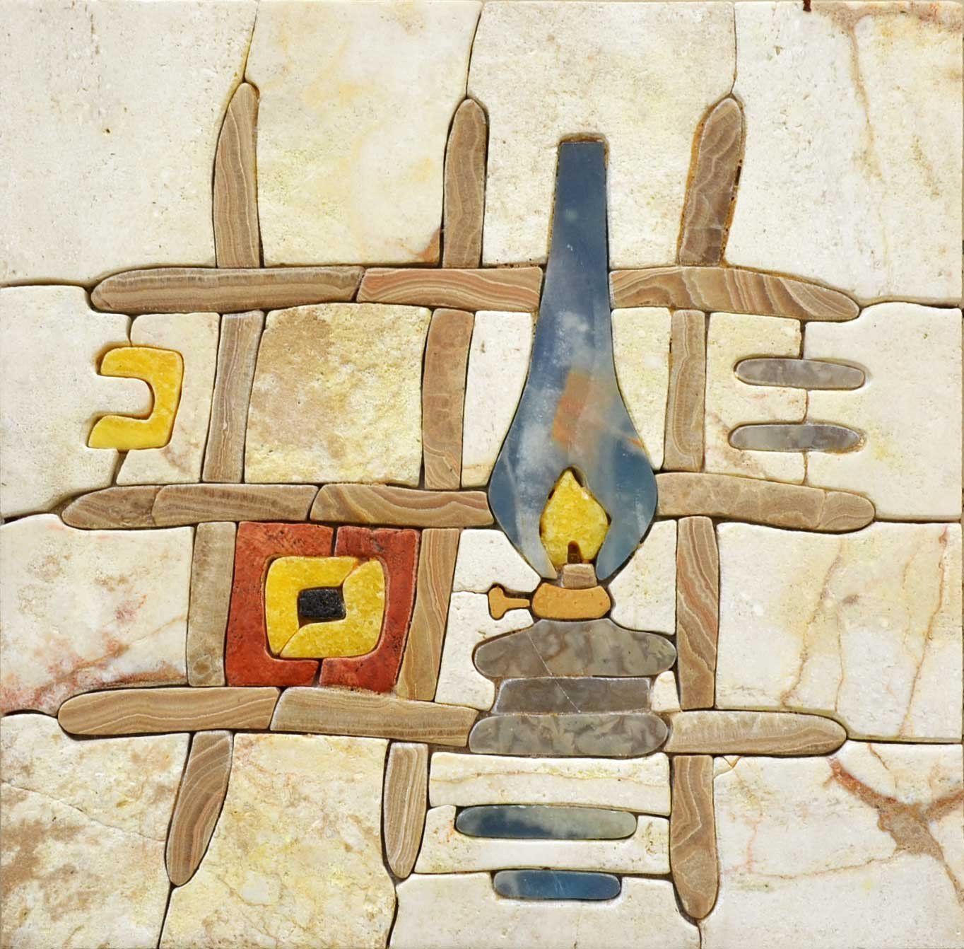 The Prehistoric Lanterna features a harmonious blend of muted colors that create a serene backdrop for your home. The artistry behind this mosaic lies in its intricate design, bringing together soothing earth tones with splashes of yellow to mimic the warm glow of a flame. This vibrant hue serves as a striking focal point, elevating your walls and adding depth to your décor.