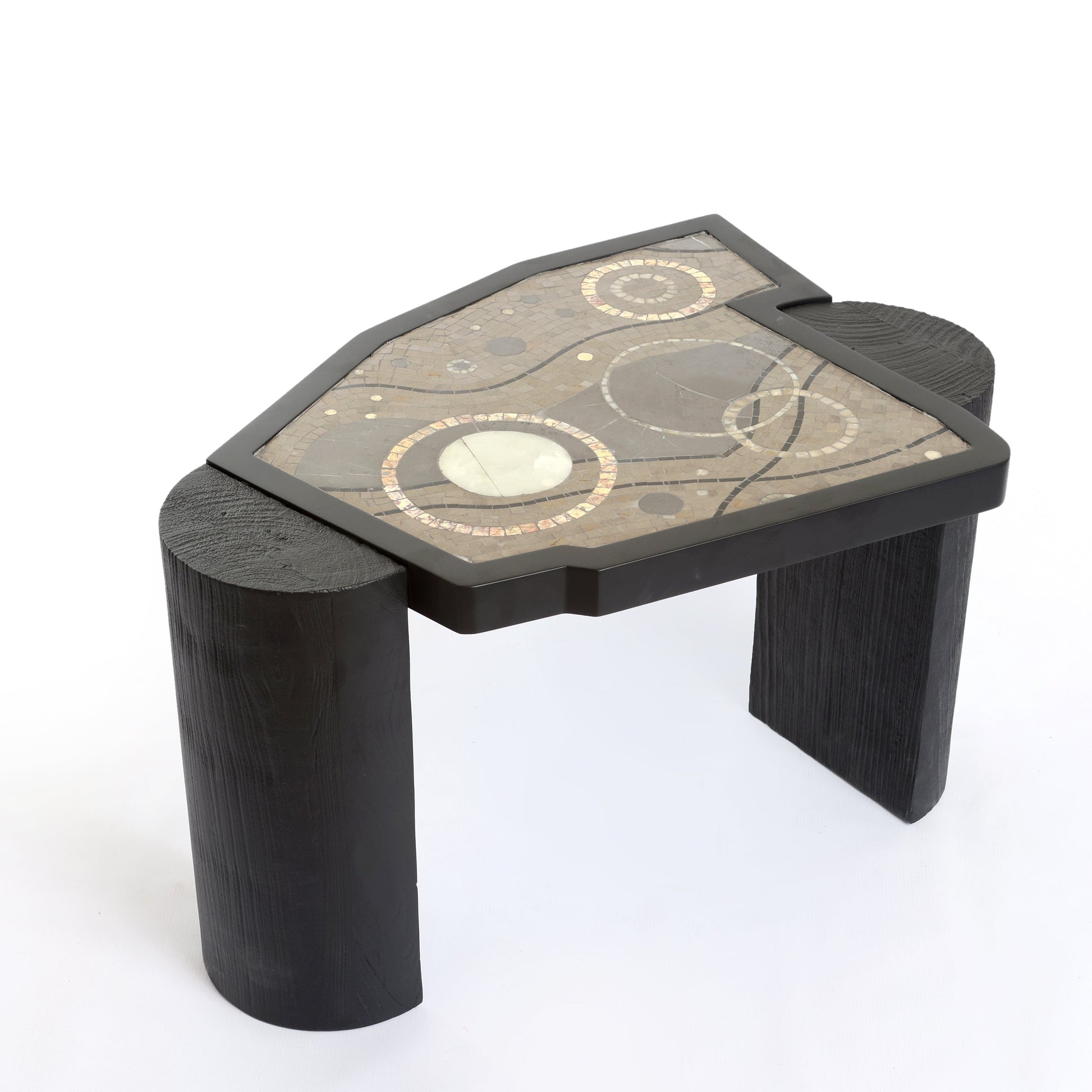 Crafted with precision, this unique side table features a stunning mosaic inlay that showcases a captivating blend of colors and textures. Each mosaic piece is meticulously placed to create a beautiful tapestry that stands out while seamlessly harmonizing with its surroundings. The artistry in the mosaic top guarantees that each table is a one-of-a-kind masterpiece, adding a personalized touch to your home decor.
