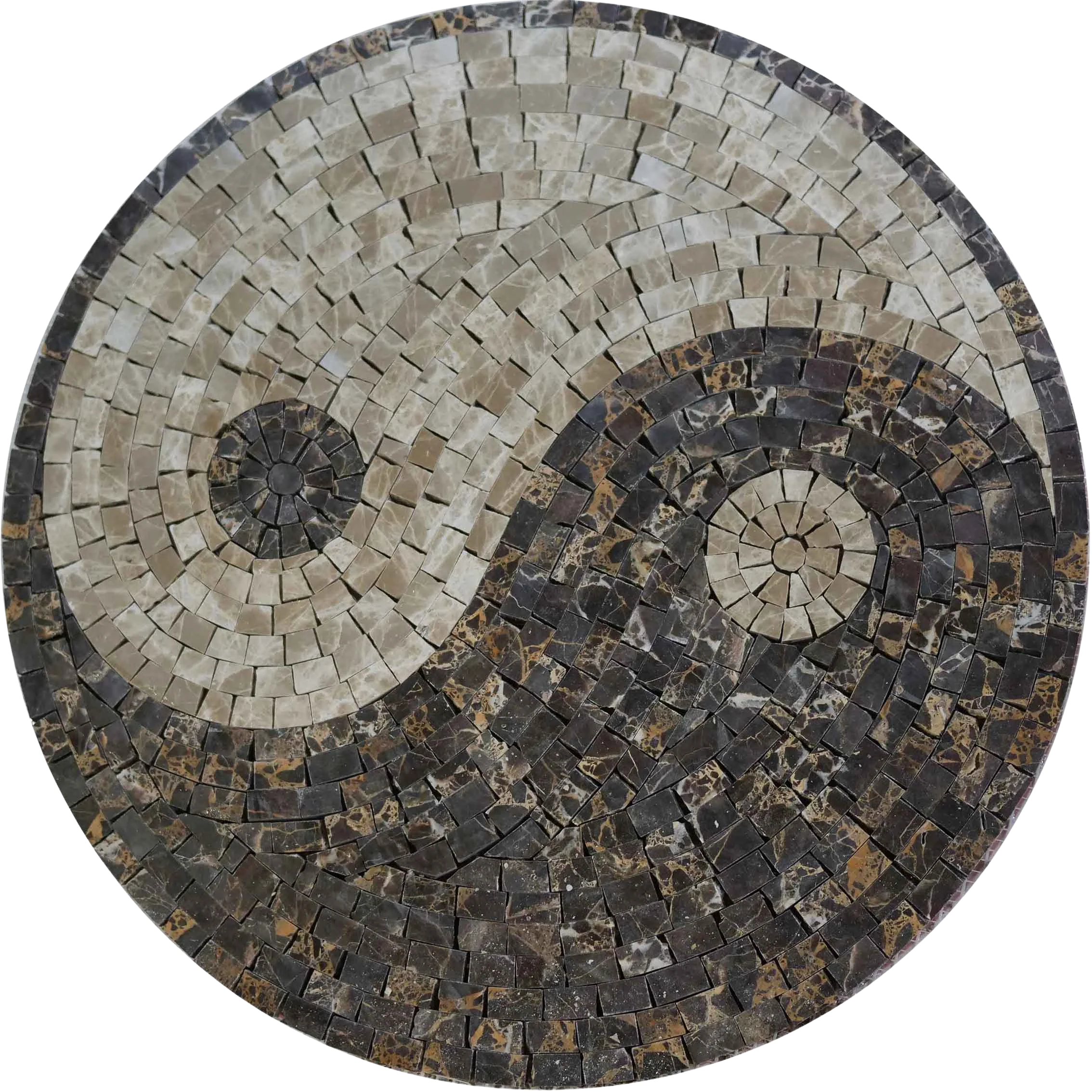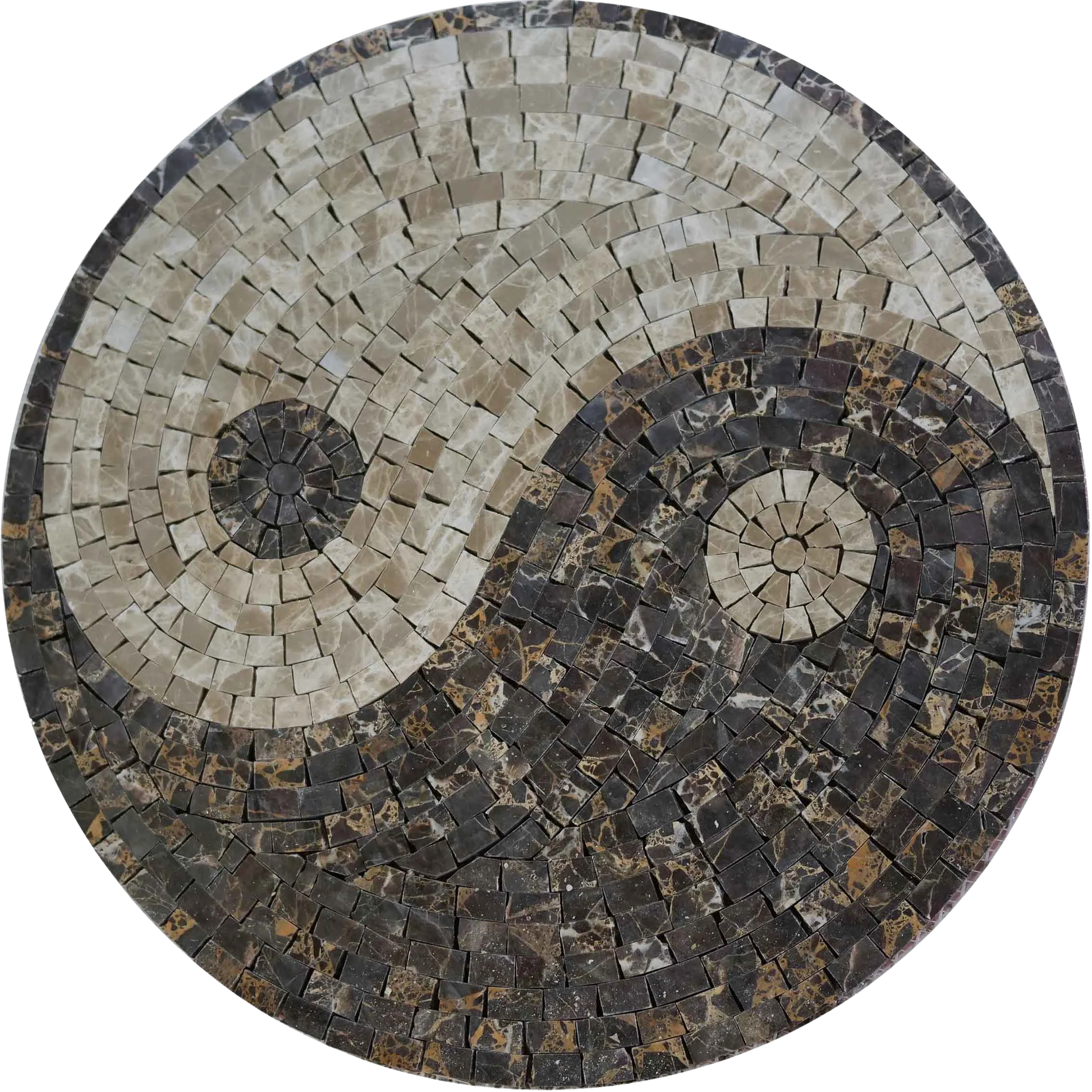 Customization options are available for the size of your Earthy Yin Yang Mosaic Medallion, allowing you to choose the perfect fit for your living space, patio, or garden. Whether you want to enhance your home with a symbol of balance and peace or create a serene outdoor retreat, this medallion is versatile enough to suit your needs.