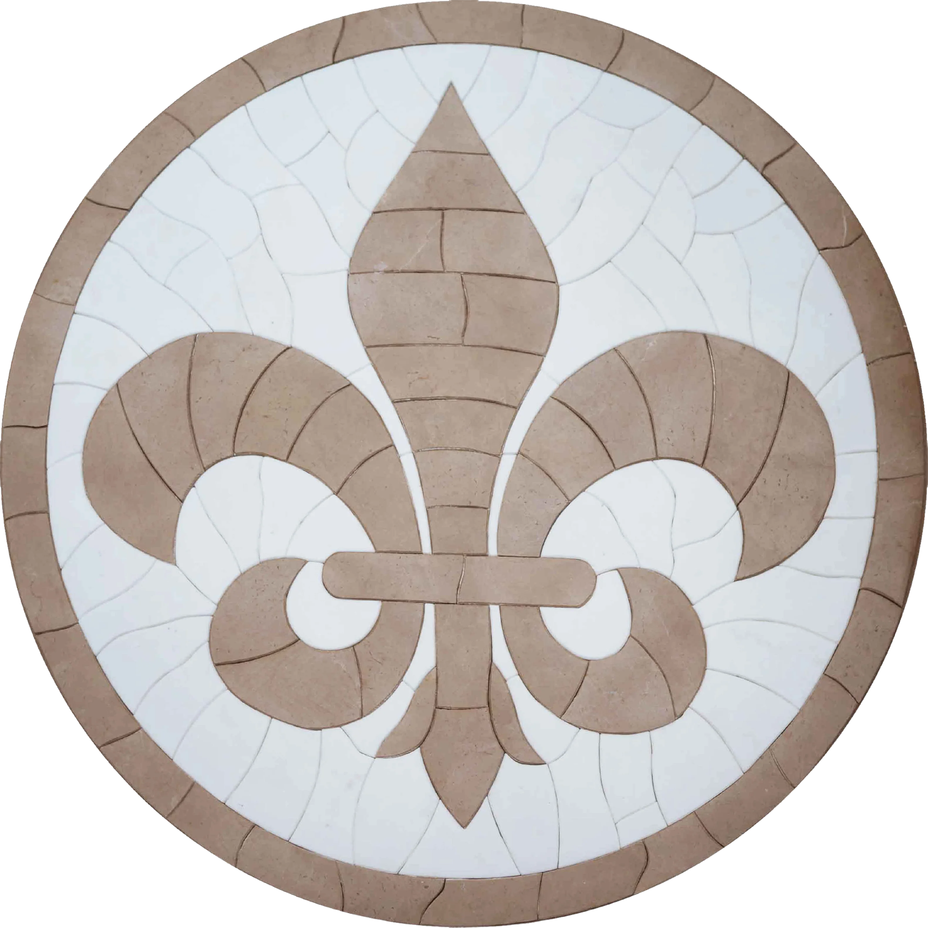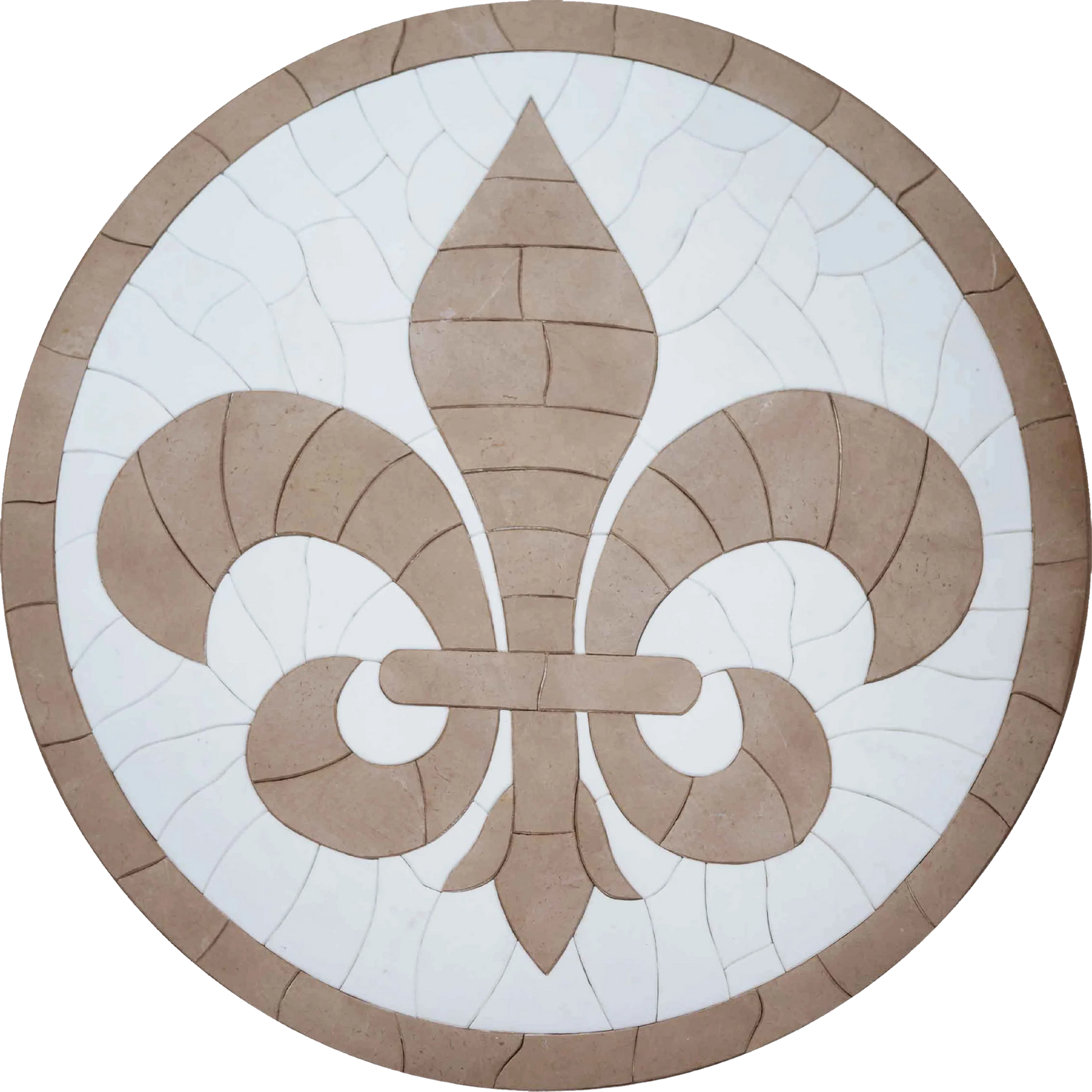 The Mosaic Artwork - Fleur De Lis is versatile in its application; it can serve as a breathtaking table top, adding a touch of sophistication to your dining area, or as a striking accent when displayed on any wall or floor. Whether you choose to showcase it indoors, where it can enhance your living space with elegance, or outdoors, where it brings a sophisticated charm to your garden or patio, this mosaic artwork is designed to inspire admiration.